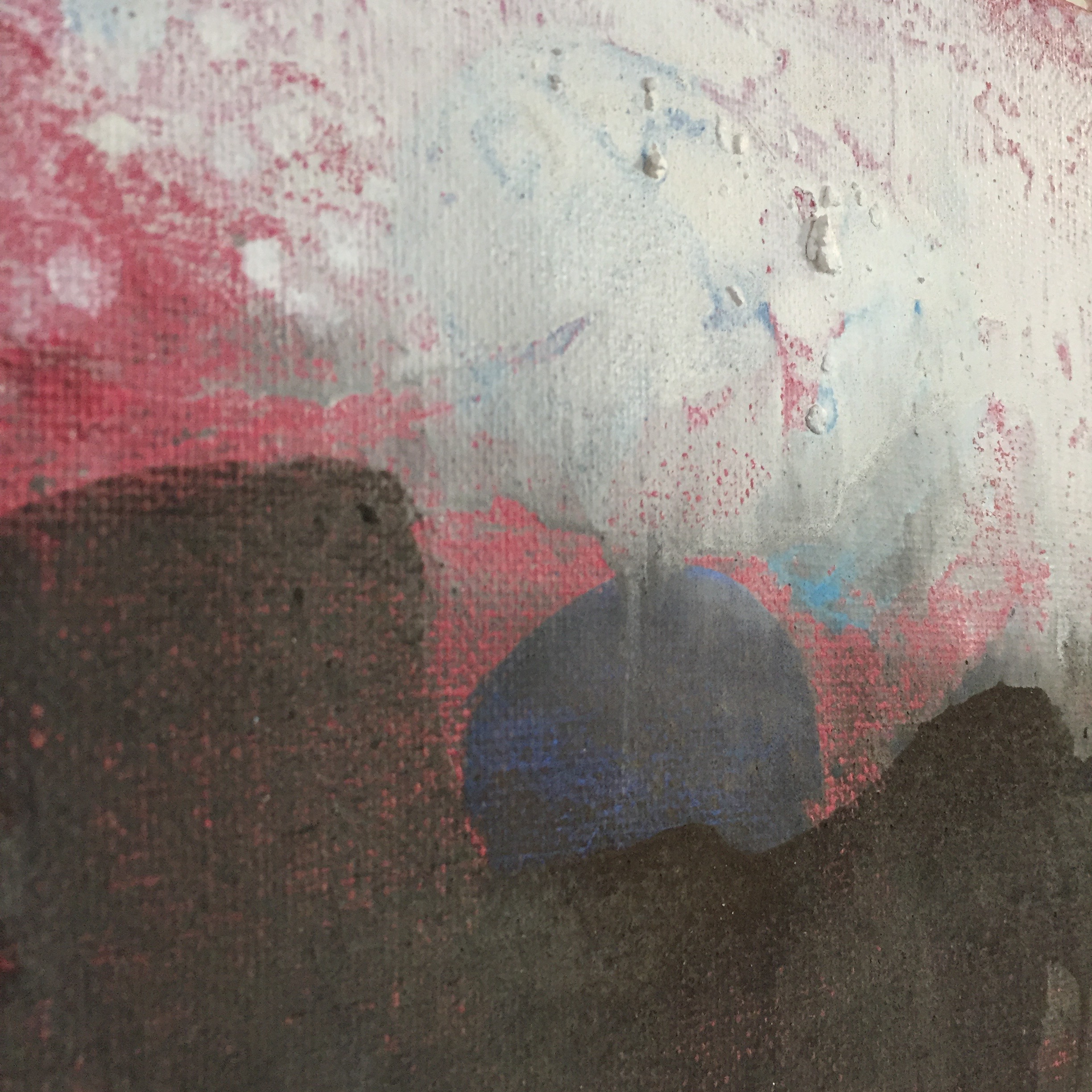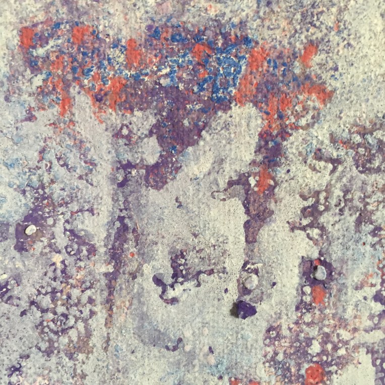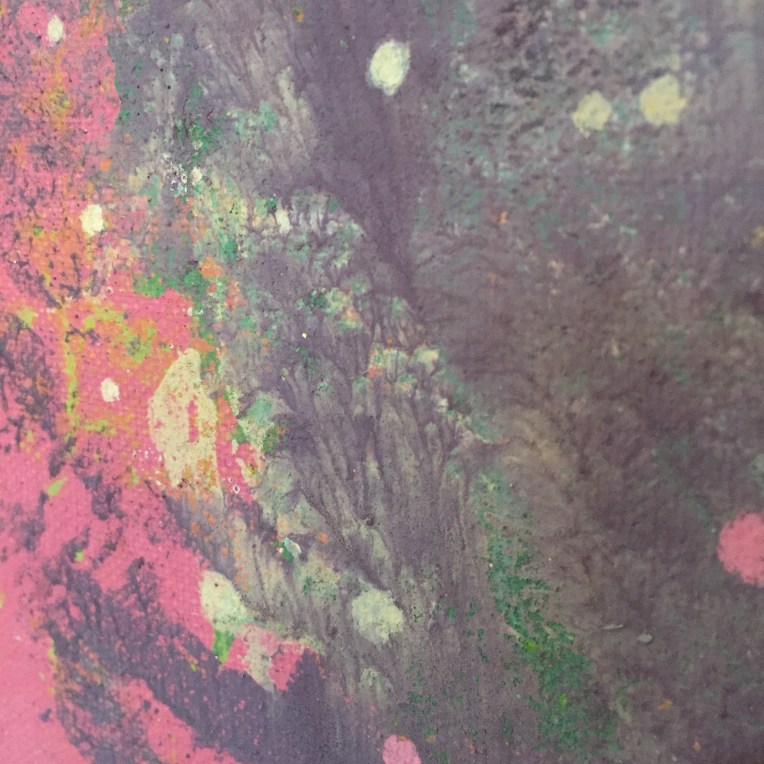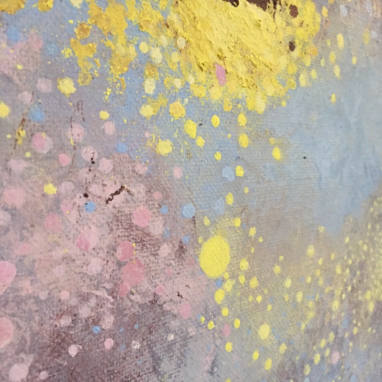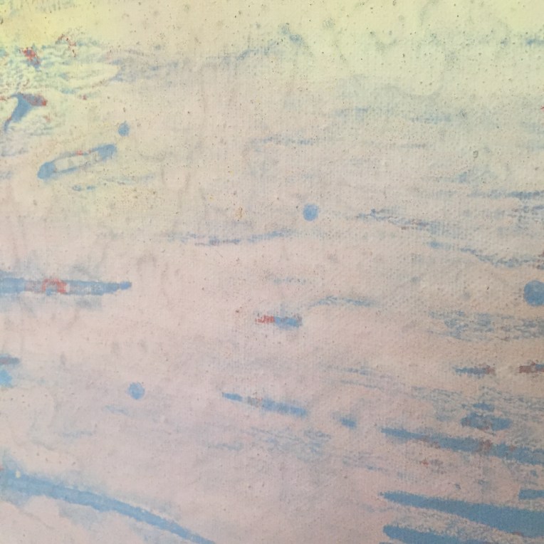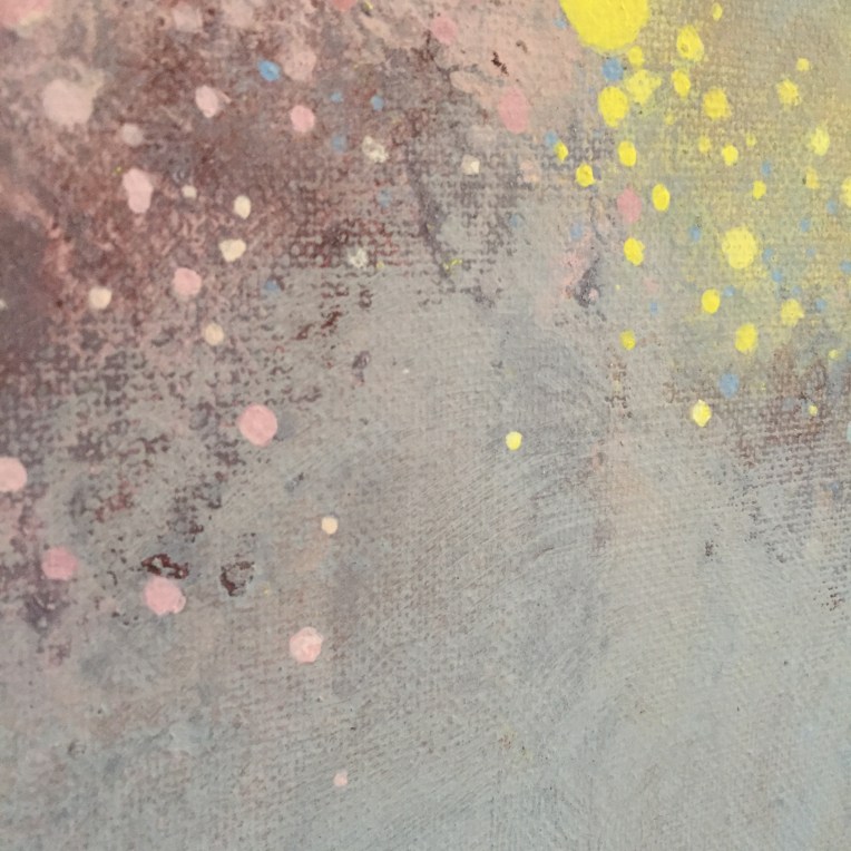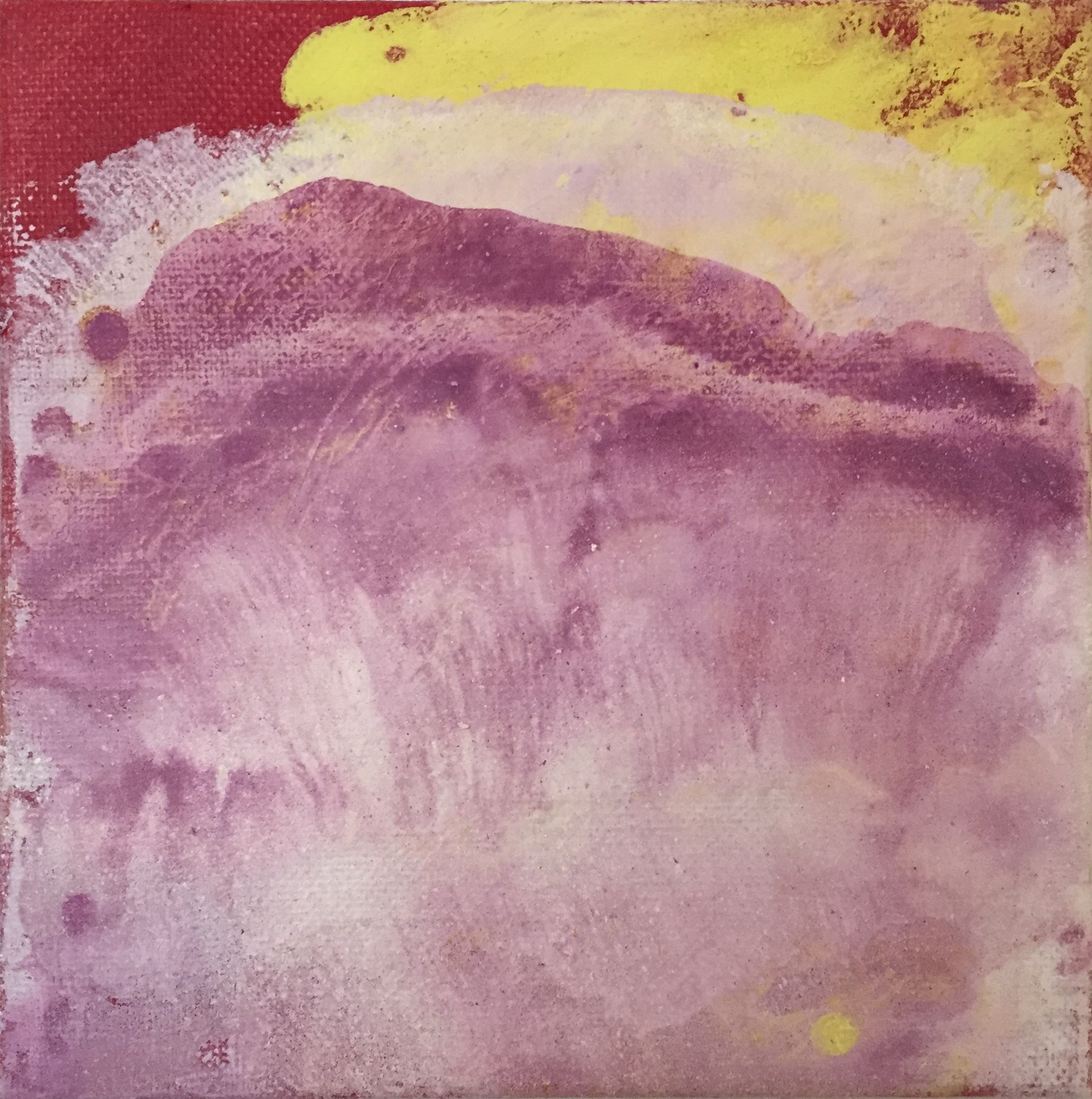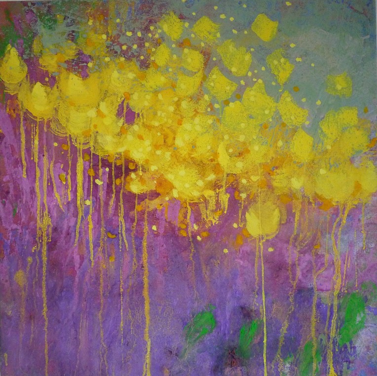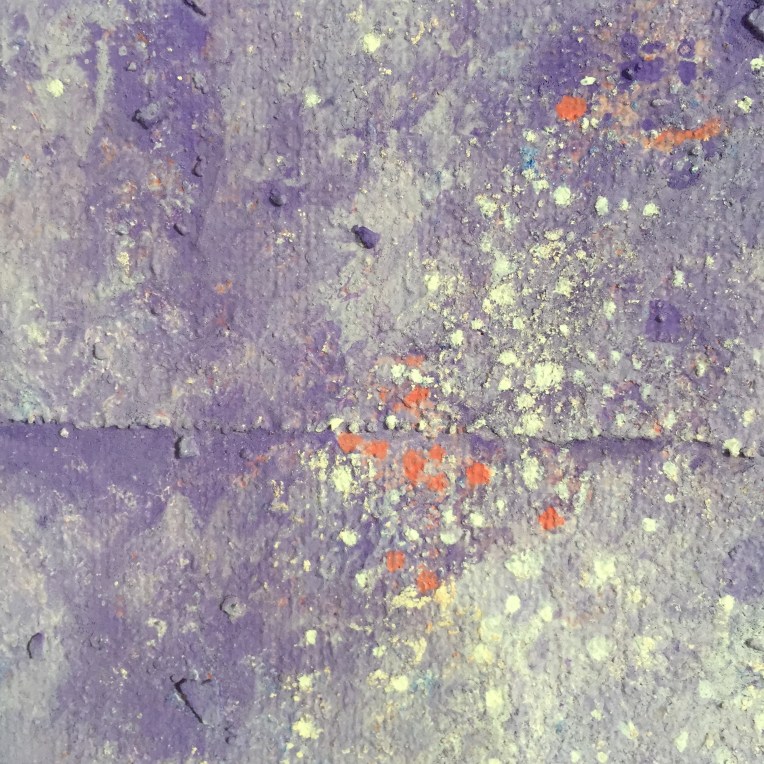 Tröst, 40×40 cm. Sand och frö av stickors i färgen. Målningen gör sig bra liggande.