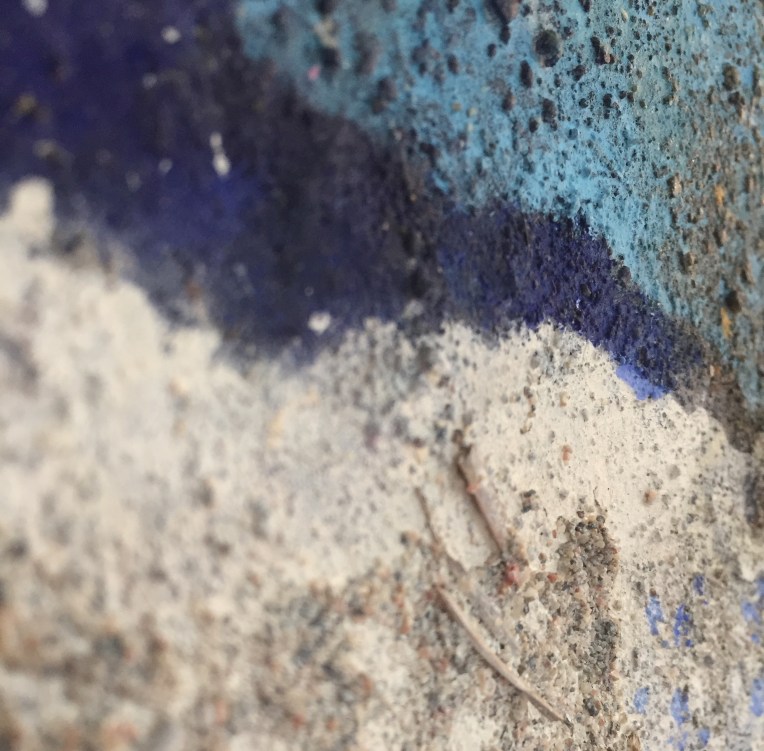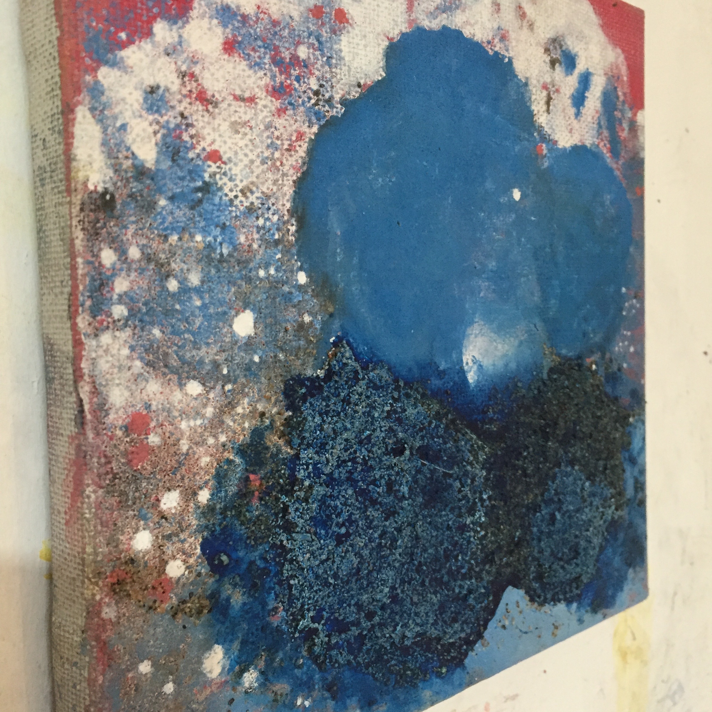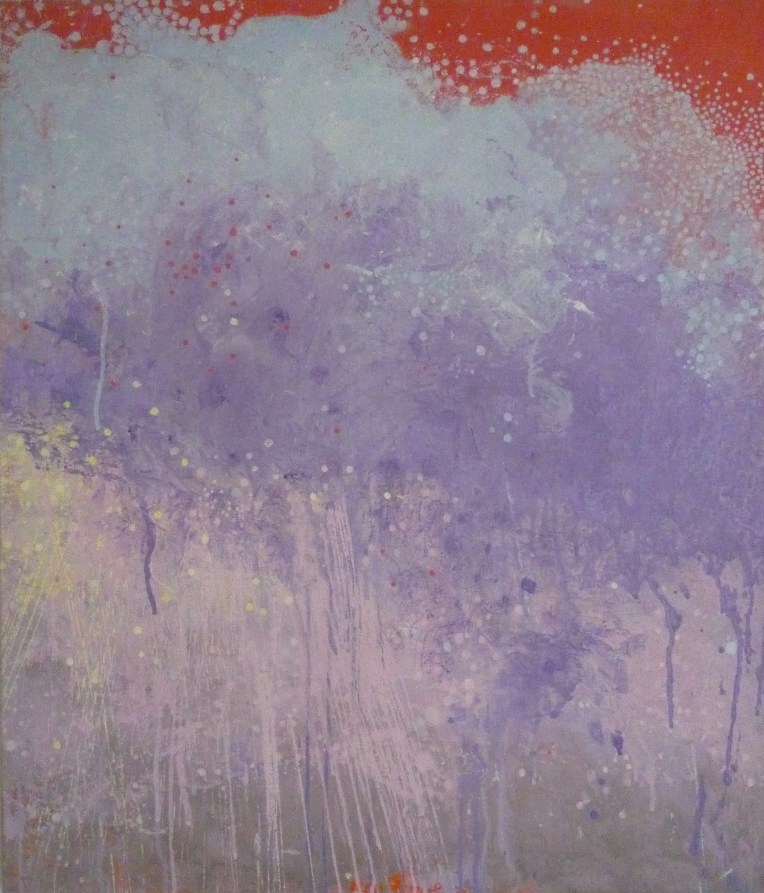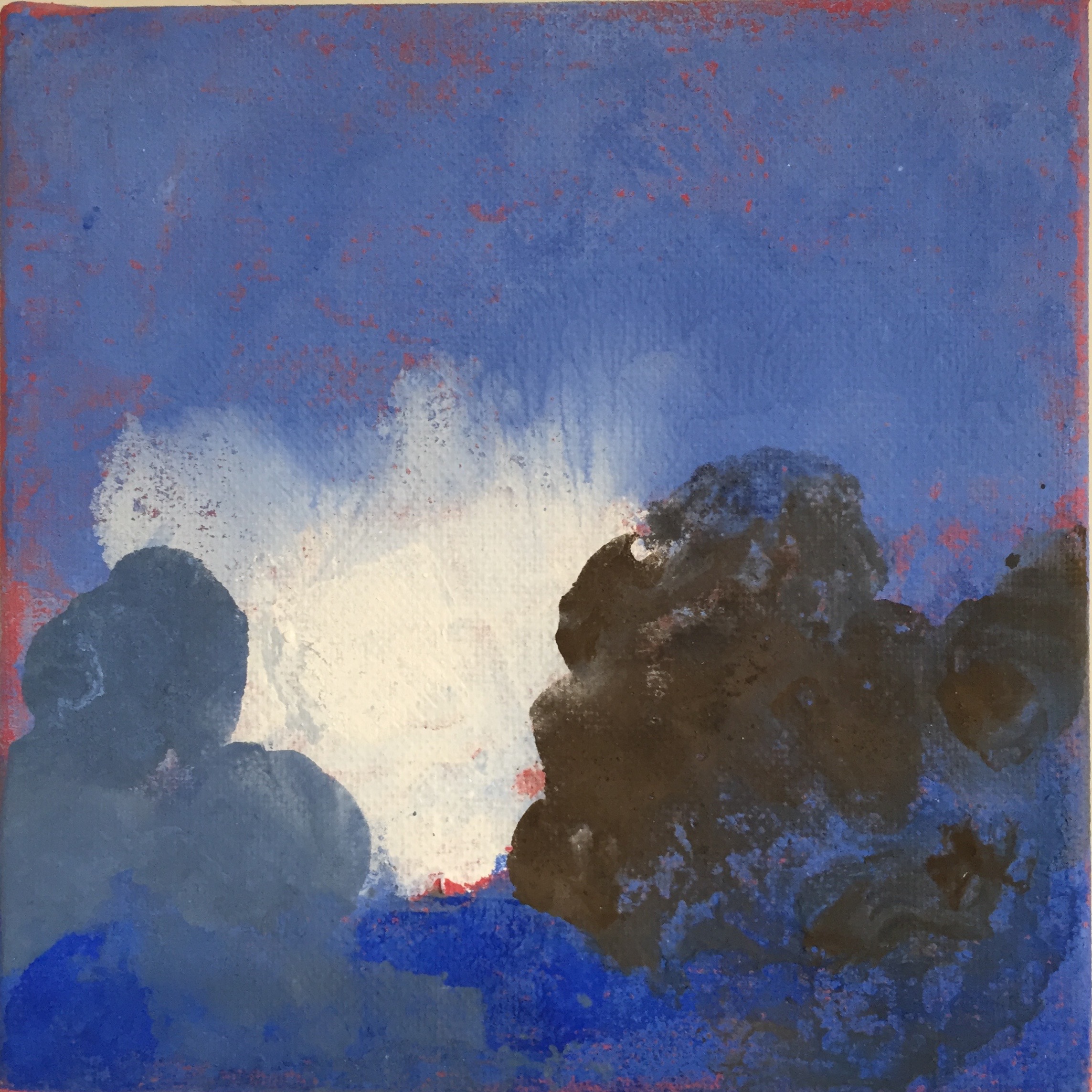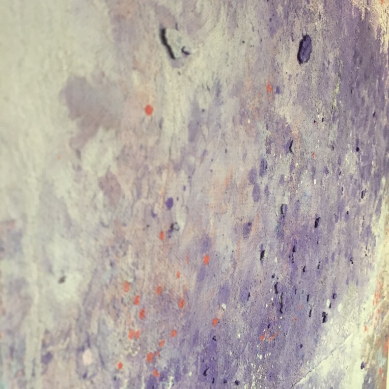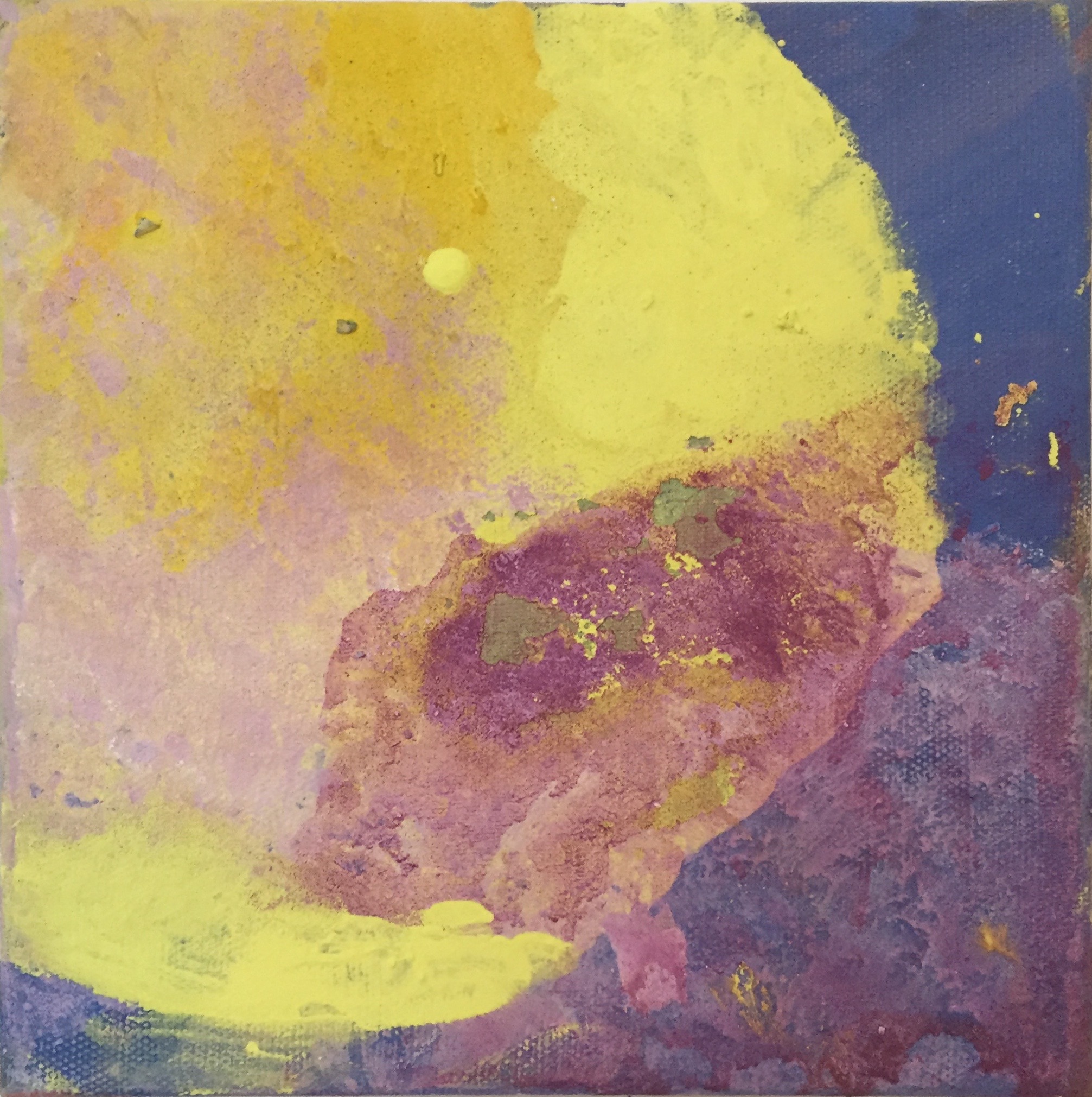 Tröst, 40×40 cm. Sand och frö av stickors i färgen. Målningen gör sig bra liggande.