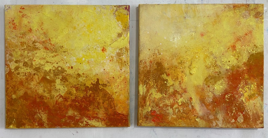 Pieces of the Sun. Diptyk, två målningar 40×40 cm.