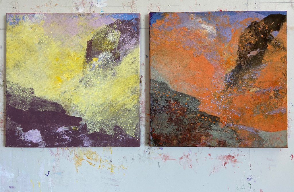 Ljuset VÅR och HÖST. Målningar 2020-2021. Alla målningar är 40×40. De vänstra målade jag förra våren och de högra i början av detta år. Jag har sökt skillnaderna i ljuset när ljuset kommer och när det går. Dela det här: Dela på X (Öppnas i ett nytt fönster) X Dela på Facebook (Öppnas i ett nytt fönster) Facebook Gilla Laddar in …
