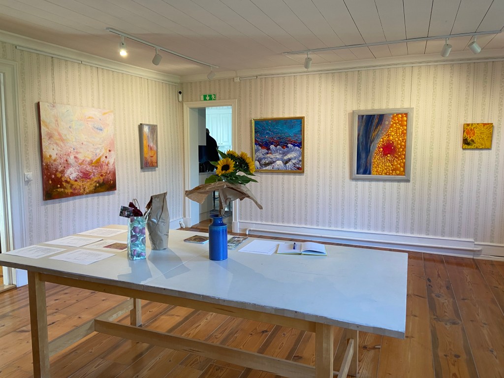När jag till fullo bestämde mig för att satsa på mitt måleri träffade jag konstnären Per Hüttner som sedan tio år har handlett mig med betydelsefulla samtal. Han seglade förbi här nere och såg att färgerna i mina målningar vittnar om denna natur.